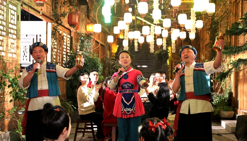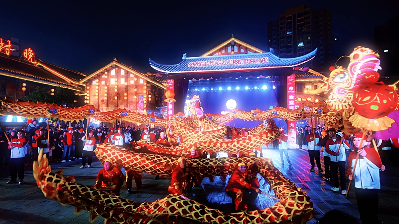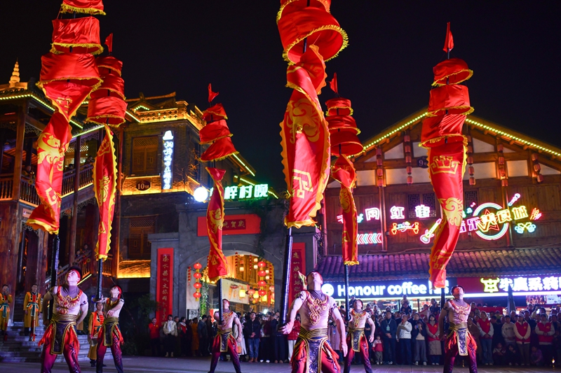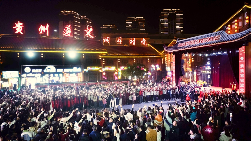 | 关注贵州网讯∶华灯初上,古街焕彩。1月18日晚,2026贵州“村晚”遵义桐梓分会场热闹开演。活动以“黔川渝一家亲·红红火火过大年”为主题,打破传统舞台局限,“诗仙”李白在“一街一景、一步一戏”的沉浸式剧情空间中,全域体验桐梓“村晚”氛围,国风诗意碰撞黔地年俗,吸引了众多市民游客欢聚一堂,在欢声笑语中定格浓浓年味。 当天晚上,在桐梓县省级旅游休闲街区桐梓记忆,古街已然化身年味海洋。木质廊檐下红灯笼次第点亮,与复古招牌、摩崖经阁相映成趣。当晚19点,“诗仙”李白扮演者一声吟诵从天上月坠入人间年,非遗唢呐率先奏响,威风锣鼓好似惊雷滚动,震彻街巷,整场晚会拉开序幕。 “刚进入现场就被舞狮表演震撼到了,孩子也是第一次见这么热闹的场景,特别的兴奋。”市民范涛素直呼惊喜。 “此次‘村晚’主打‘寻年味、逛村晚’沉浸式体验,串联演出、非遗、美食等环节。特邀“诗仙”李白漫游体验,借其对夜郎秘境、娄山雄奇、古道风华的向往,串联高台舞狮等互动节目,让市民游客在游走中沉浸式感受‘村晚’魅力。”贵州“村晚”遵义桐梓分会场现场导演刘超介绍道,同时,现场融入川渝元素,营造客主共融、热闹迎新年的浓氛围。 沿着非遗长廊前行,“诗仙”李白看桐梓非遗文昌戏婉转韵味,赞高台舞狮腾跃灵动,赏川剧变脸技艺精彩瞬间;驻足年俗区,看众人挥毫写春联、争相猜灯谜,墨香满溢;又遇国家级非遗项目遵义道真仡佬族饮食礼俗三幺台开席,满街年味里尽是诗韵与欢腾。 “早就知道桐梓的‘村晚’特别的火,我们也想来感受这个氛围。今天我们带来的节目是国家级非物质文化遗产仡佬族的三幺台,每逢大事的时候都要吃这种席,分别有茶席、酒席、饭席,我希望更多人了解非遗,来我们遵义。”三幺台吼喊表演者刘波带着吗,满满地诚意而来。 “太有新意了!跟着‘诗仙’李白逛古街,就像穿越到了盛唐。特别是最后的舞龙舞狮和烟花秀,太震撼了,让我们感受到现在的日子确实是越过越火红。这个年既热闹又有文化韵味,希望全国各地的朋友来我们桐梓过年。”市民张楚涵对这场沉浸式体验赞不绝口。 在众多节目中,文昌戏是流传于桐梓县南部乡镇民间的一种传统戏剧,原本是在民间祈福还愿时表演,表演人数一般为7~12人,参演者是当地的村民,为了在“村晚”舞台上有一个精彩的表演,已连续排练了2个月。 “我们今天为大家带来是文昌戏,排练这个节目就是为了上‘村晚’。今天现场还融入了李白沉浸式的场景,既传承了老的技艺,又添加了新的创意,看到大家的喜欢,我们表演者也很开心。”演出人员王世烈满脸笑意地告诉记者。 桐梓素有“黔北门户”之称,是黔渝合作的“桥头堡”。自2006年起,数以万计的川渝“候鸟”在此旅居,桐梓“村晚”也应运而生,悄然孕育了“客主一家亲”的土壤。 “今天我一早开着车带着家人专程来参加这那一场别开生面的‘村晚’,来到这个地方过后,感受到了很震撼,年味非常浓,让我很难忘,贵州人民非常好客。”重庆游客何时直言不虚此行。 据了解,本次桐梓分会场活动共集结国家级、省级、市级、县级非遗项目40余项,吸引线下观众超5万人次。 “本次‘村晚’和以往的有很多的不同,去掉了舞台化,把整个演出沉浸式的放入桐梓记忆街区。通过这次‘村晚’的举办,让我们桐梓的老百姓过一个愉快祥和的春节,感受我们中华传统文化的魅力,助推乡村旅游的发展。”刘超说道,接下来,桐梓“村晚”还将推出系列精彩活动,既有唱歌、舞蹈等比赛,还有小年夜“村晚”。在正月十四,还将上演龙狮巡游、打铁花等特色环节,持续点燃新春欢乐氛围。(图/文∶桐梓县融媒体中心) 编辑:陈晓梅 责编:黄 英 编审:杨道军 |