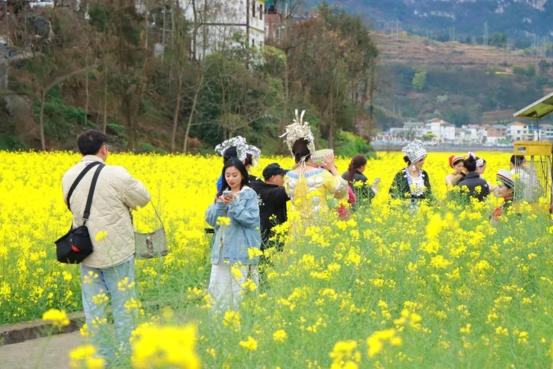 | 3月7日,主题为“春季百花开•村晚村村演”的桐梓春季“村晚”在狮溪镇盛大开启,一场集文化、体育、旅游等于一体的“春日宴”正式摆上了餐桌。金色的油菜花在微风中轻轻摇曳,仿佛是大自然为这场盛会铺就的金色地毯,迎接来自四面八方的宾客。 当天,游客们漫步在位于狮溪镇黄坪坝区的3000余亩花海间徜徉。沿途展示的乡村T台秀、“贵州村艺·羊磴乡土而新奇”乡村艺术展等独具特色,让人眼前一亮。游客们在欣赏美景的同时,感受着浓厚的乡村文化氛围。同时,还有滑翔伞在油菜花田上空自由翱翔。 “穿着民族服装来这里游玩,真的太美了。”来自俄罗斯的留学生卡妮塔说,狮溪镇拍照打卡太出片了。 另一边,乡村市集热闹非凡。腊肉、香肠、团豆等本地特色农产品琳琅满目,还有精美的非遗手工艺品,吸引了众多游客驻足挑选。活动现场,游客们有看头、有玩头、更有买头。 “看到宣传说这里有‘村晚’,就开车过来了,今天还买了两盒方竹笋带回家。”来自重庆綦江的游客翁庆寅开心地说。 戴玉星是狮溪当地人,看到这么多游客来狮溪游玩,她非常开心:“这几年狮溪变化很大,农业产业壮大了,交通等基础设施也越来越完善,非常欢迎各地的朋友走进狮溪、爱上狮溪”。 活动别出心裁地将舞台搭建在花田旁边。随着夜幕降临,“村晚”舞台的灯光亮起,这是一场黔川渝文化交相辉映的盛宴,多个独具特色的黔川渝节目,让观众领略到了不同地域的文化风情。 来自四川阿坝州的藏族歌手带来《藏族姑娘》等歌曲联唱,用高亢的歌声传递着高原的豪迈与热情;贵州省民族歌舞团、遵义市文化馆为现场观众带来歌曲《悦享遵义》;桐梓本地的父老乡亲和文化志愿者也带来了《心在狮溪口》等原创节目,他们用最朴实的方式表达着对家乡的热爱。 “‘村晚’现场的氛围真的很不错。”来自重庆渝北的游客娄义兴说,白天逛一逛美景,在花田里拍拍照,晚上在‘村晚’现场和大家一起感受各地的文化,很有意思。 据悉,今年桐梓春季“村晚”将持续近两个月的时间,主会场设在狮溪镇、官仓镇,旨在打造一场集文艺展演、非遗展示、民俗体验、乡村市集、体育赛事于一体的文化盛宴。 同时,全县20多个乡镇(街道)结合本地花期全域联动,无论是在城镇或乡村,都能感受到这场“村晚+”的魅力。 桐梓县文化旅游局副局长梁洵表示,春季“村晚”不仅是一场简单的文艺活动,更是桐梓县推动文化、体育、旅游和农业融合发展的重要举措,它彰显了桐梓“村晚”作为中国西部最具影响力文旅集会的独特魅力,吸引着越来越多的游客前来感受桐梓的春日之美和文化之韵。 在接下来的两个月里,桐梓春季“村晚”将为游客们带来更多群众文化表演,让更多人感受到文化的魅力。(图/文∶桐梓县融媒体中心 李甜甜 杨双) 编辑:陈晓梅 责编:黄 英 编审:杨道军 |